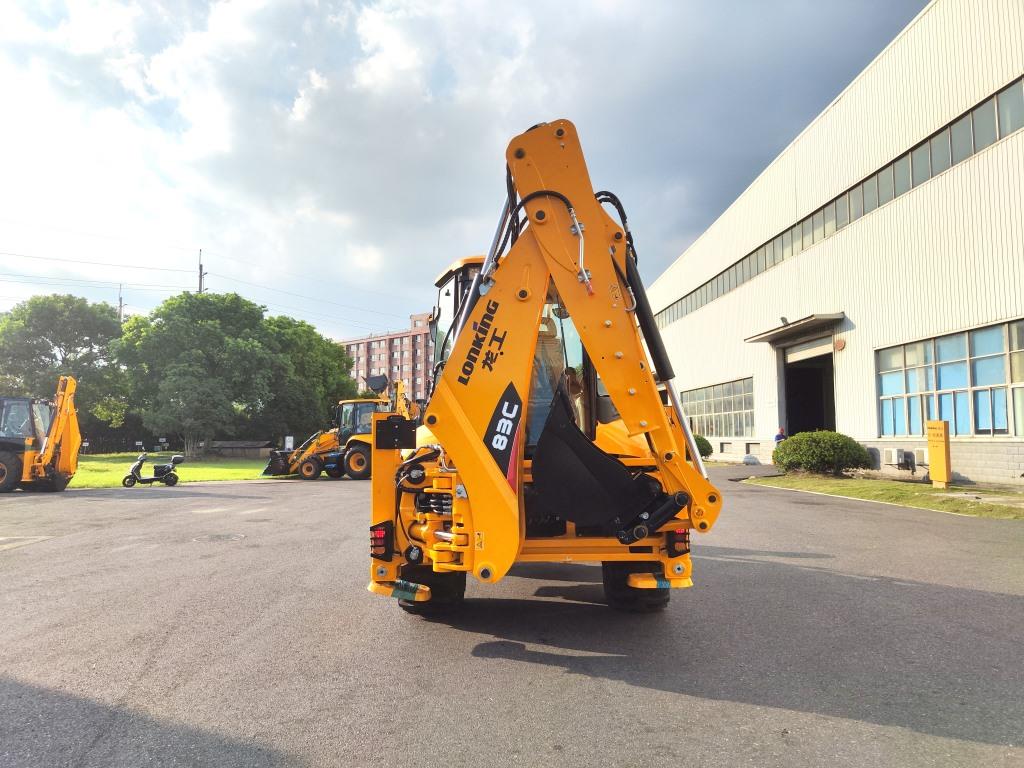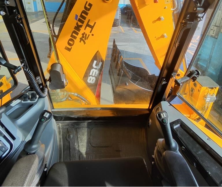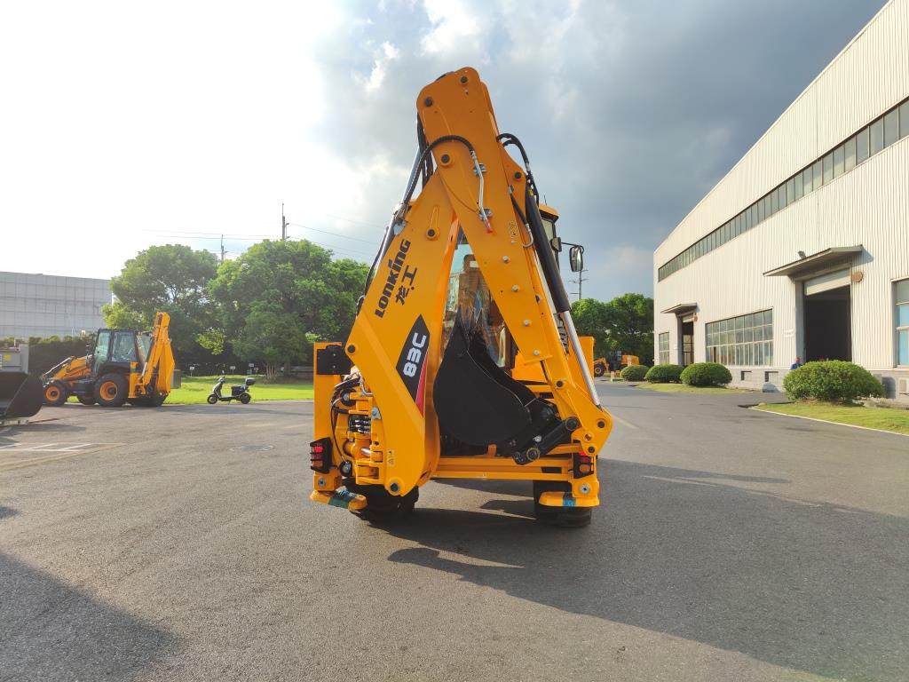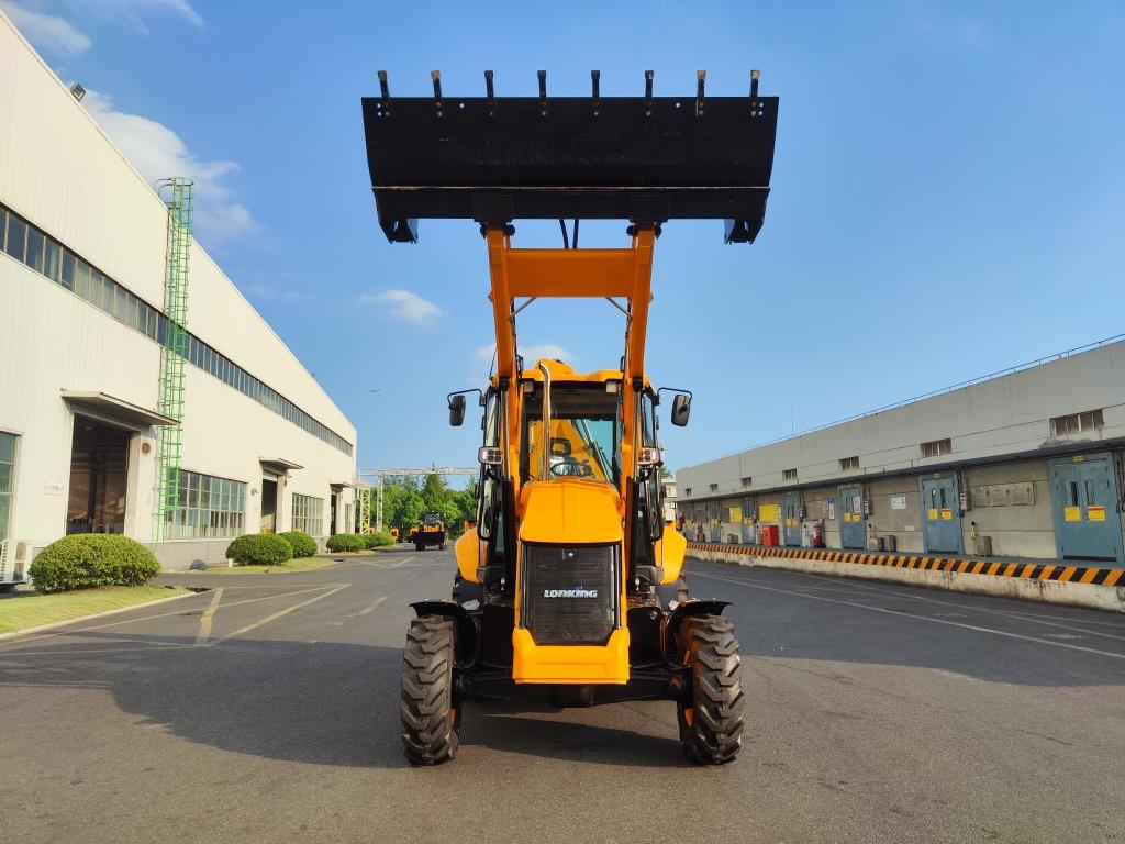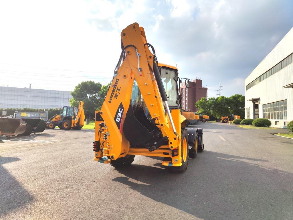 Экскаватор-погрузчик LONKING 83С в комплектации: двигатель WEICHAI WP4G100E220, 74 кВт / 100 л.с. с механическим ТНВД Евро II, трансмиссия CARRARO, аксиально-поршневой насос REXROTH 165 л./мин, телескопическая рукоять с гидролиниями для молота и бура, кабина FOPS/ROPS, пневматическое кресло оператора с подогревом, управление оборудованием джойстики – интегрированы в поворотное кресло оператора, климат контроль, аутригеры тип H, механическое быстросъемное соединение на экскаваторном ковше, челюстной погрузочный ковш 4 в 1, емк. 1,0 куб.м., экскаваторный ковш емк. 0,2 куб.м.