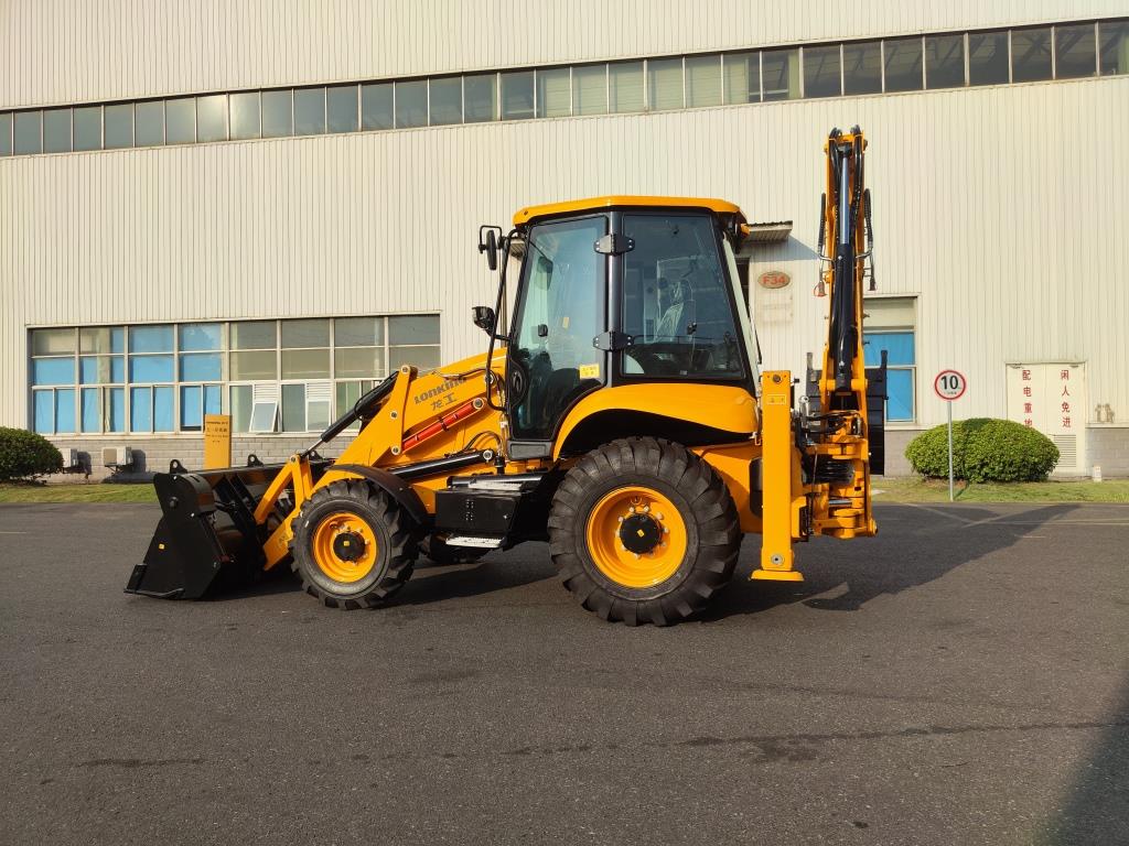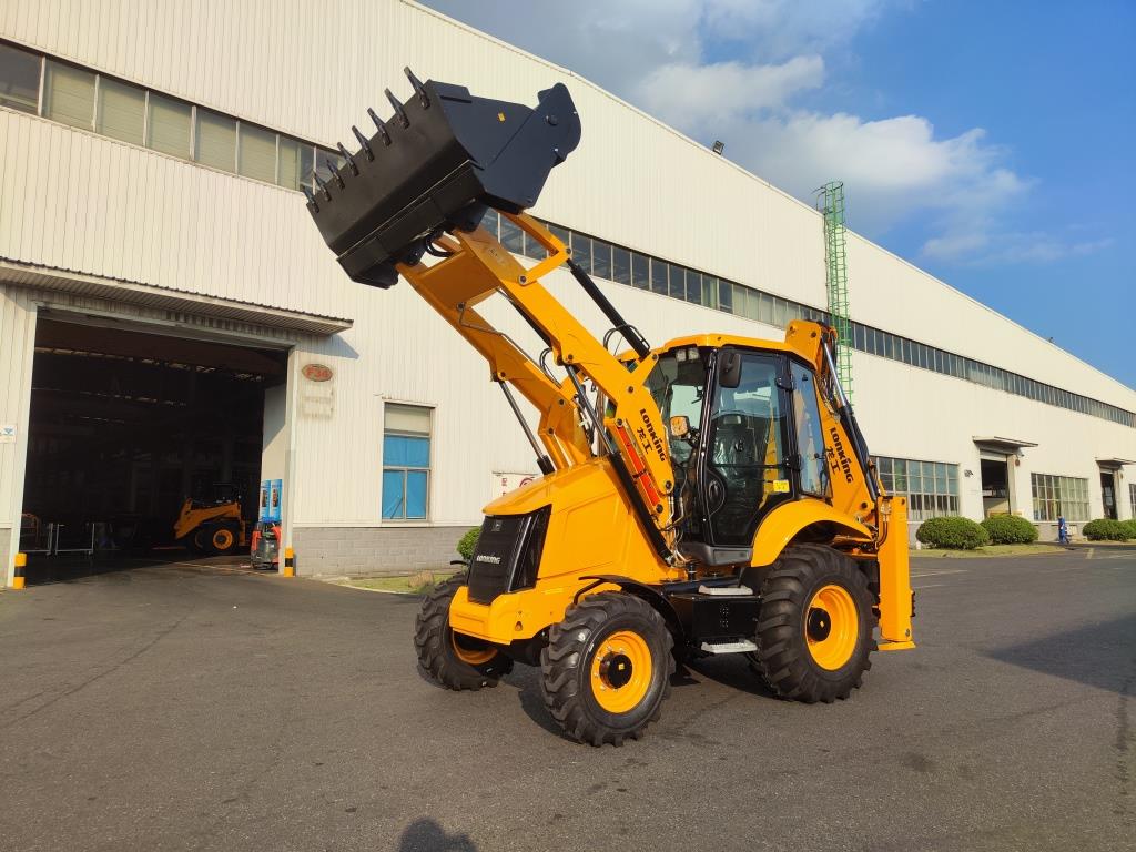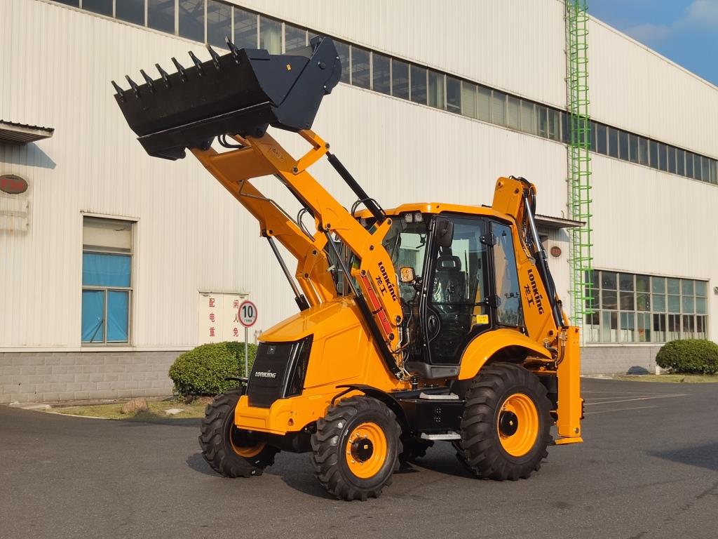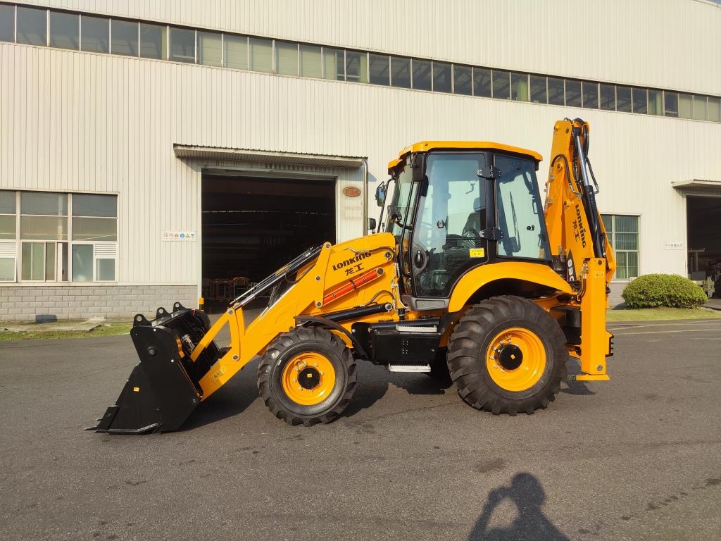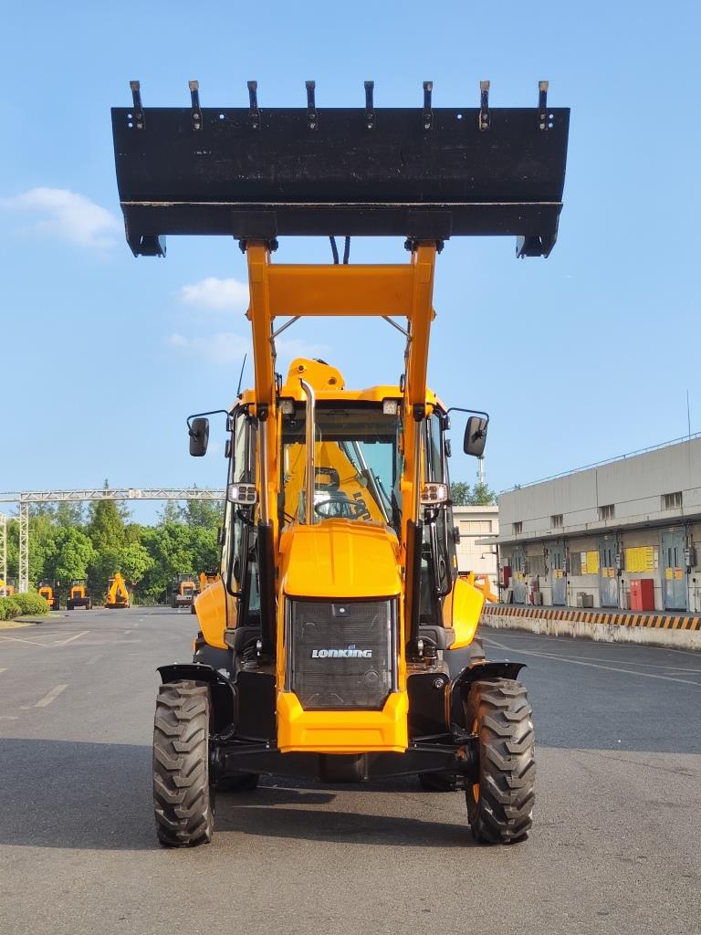 Экскаватор-погрузчик LONKING 83С в комплектации: двигатель WEICHAI WP4G100E220, 74 кВт / 100 л.с. с механическим ТНВД Евро II, трансмиссия CARRARO, аксиально-поршневой насос REXROTH 165 л./мин, телескопическая рукоять с гидролиниями для молота и бура, кабина FOPS/ROPS, пневматическое кресло оператора с подогревом, управление оборудованием джойстики – интегрированы в поворотное кресло оператора, климат контроль, аутригеры тип H, механическое быстросъемное соединение на экскаваторном ковше, челюстной погрузочный ковш 4 в 1, емк. 1,0 куб.м., экскаваторный ковш емк. 0,2 куб.м.