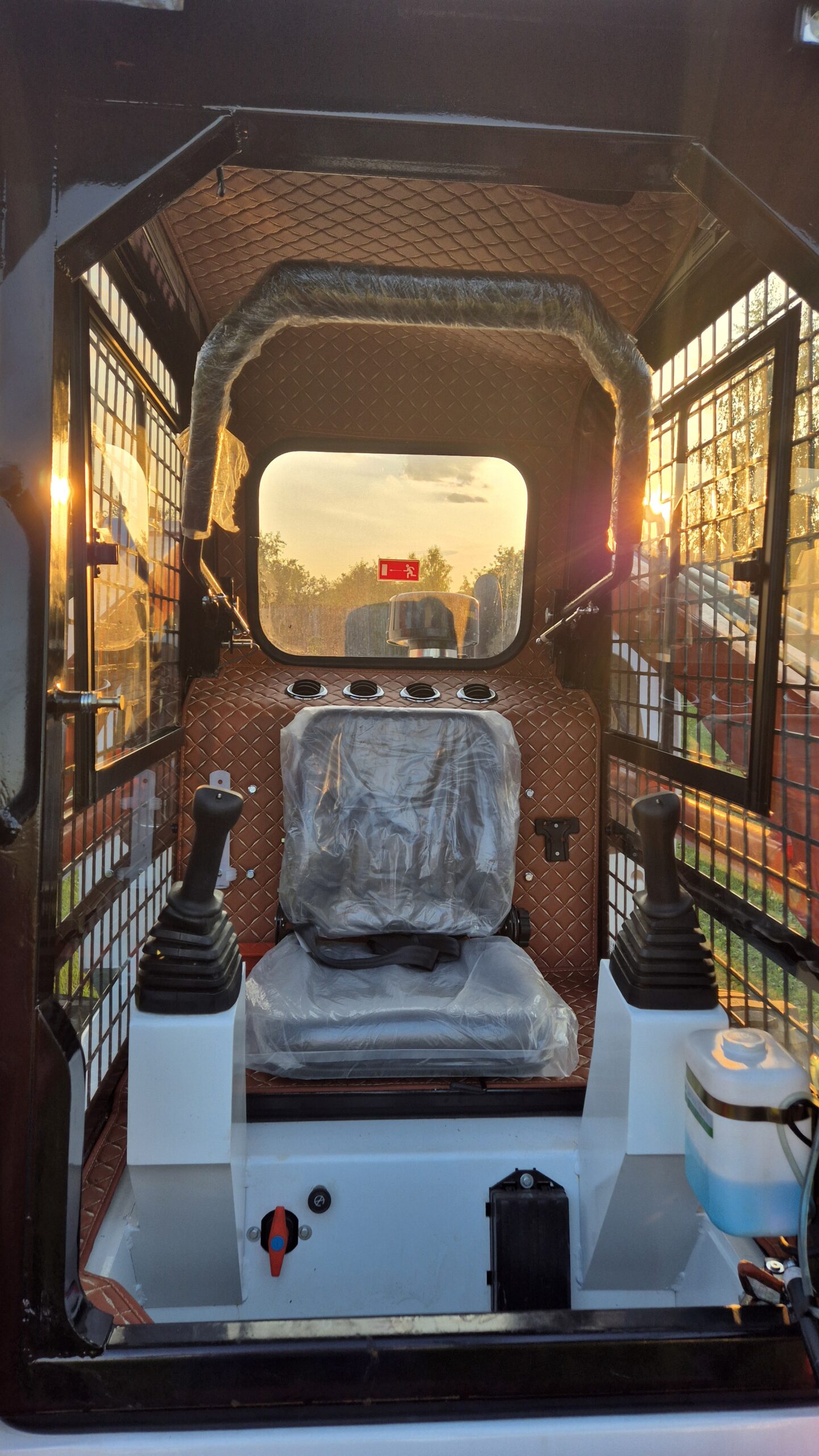 Машина управляется гидравлическими джойстиками, обеспечивающими мягкие движения на колесах и плавную работу стрелы мини-погрузчика. Педаль газа под правой ногой оператора продублирована ручным фиксатором газа, а управление дополнительным гидравлическим оборудованием обеспечивается левой двух диапазонной ножной педалью.