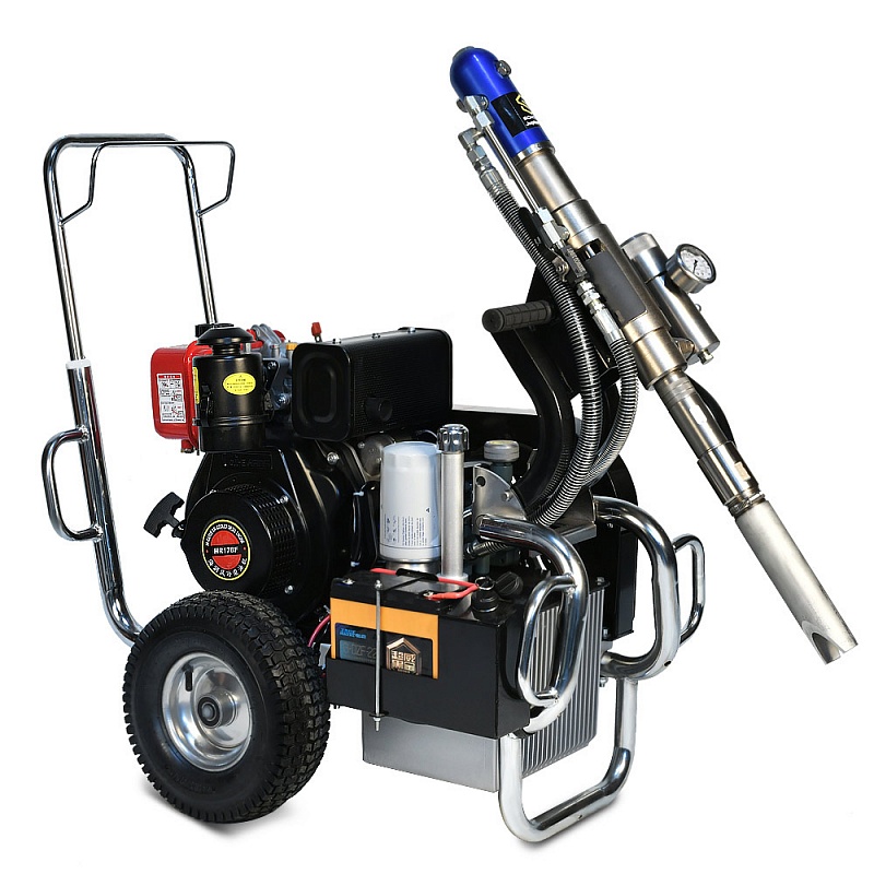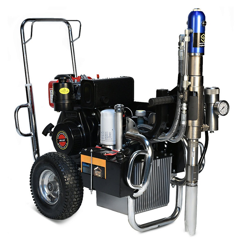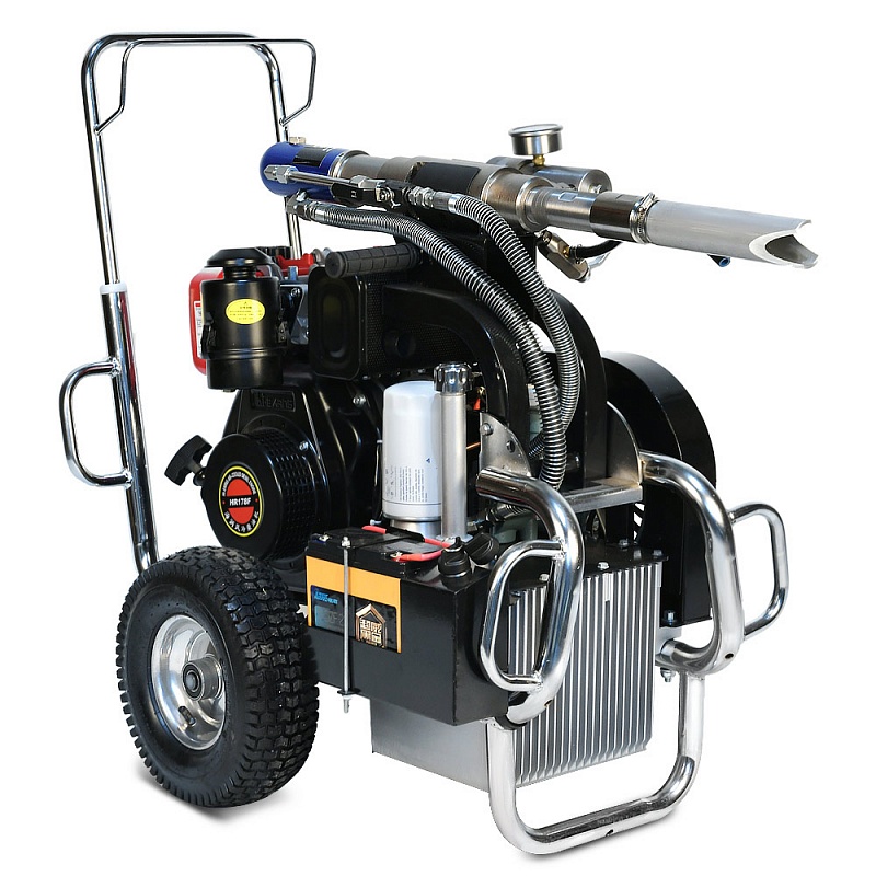 · работа на дизеле: позволяет выполнять окраску в условиях отсутствия электросетей;