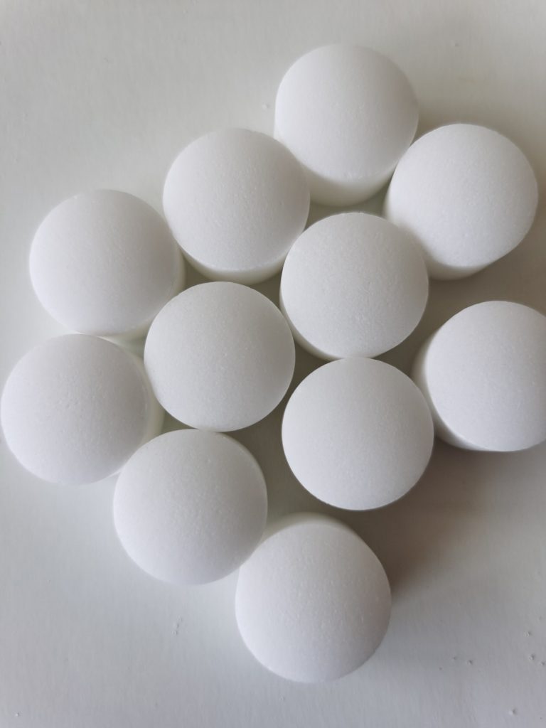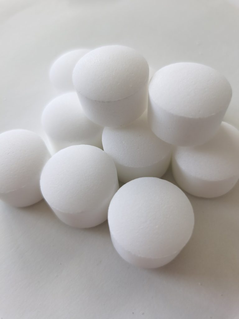 Выпускается в форме таблеточек чистого белого цвета с ровной и гладкой поверхностью.