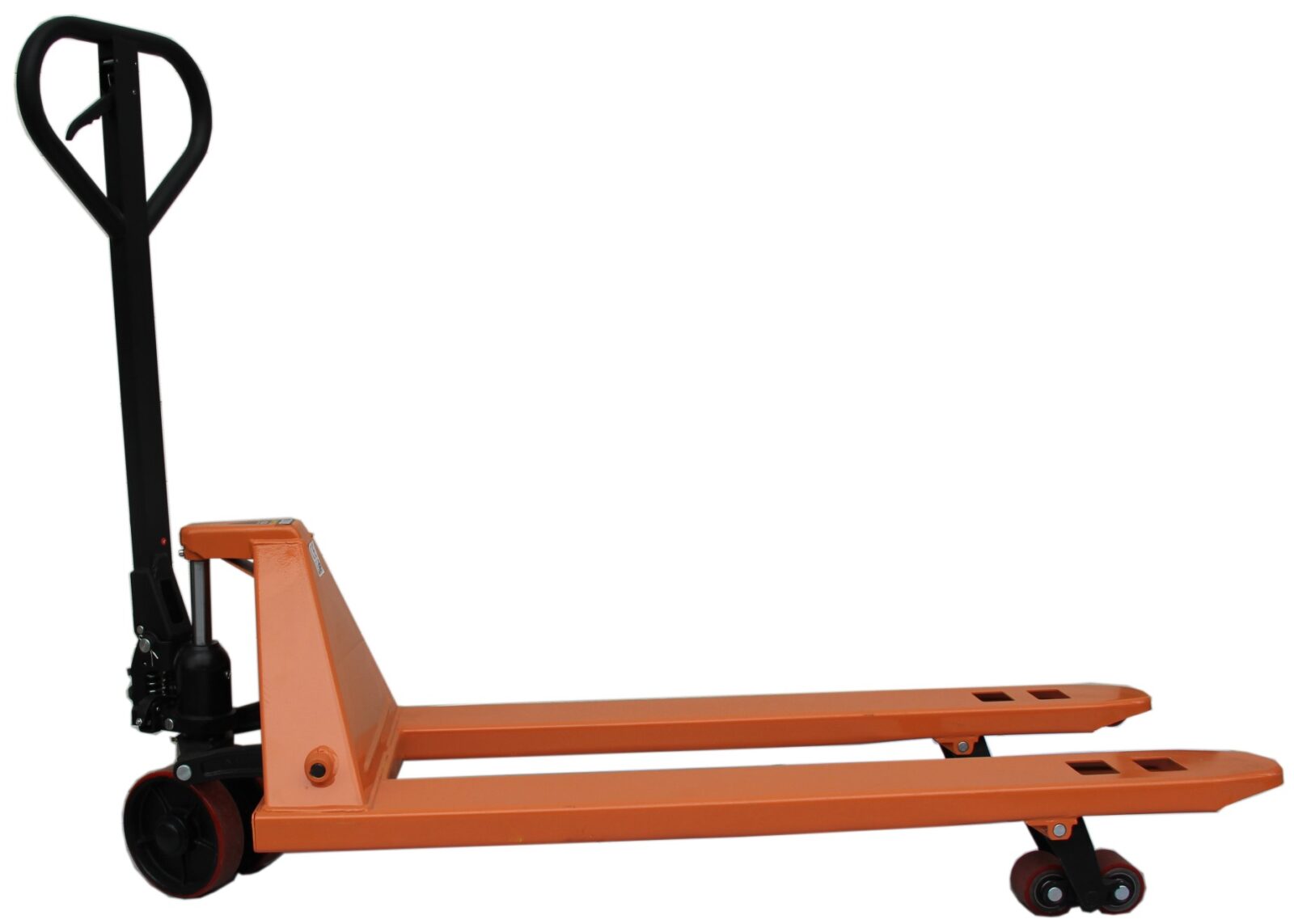 - Дополнительные ролики на концах вил предохраняют подъемные рычаги тележки от истирания при работе на неровной поверхности и помогают плавно преодолеть неровности полов.