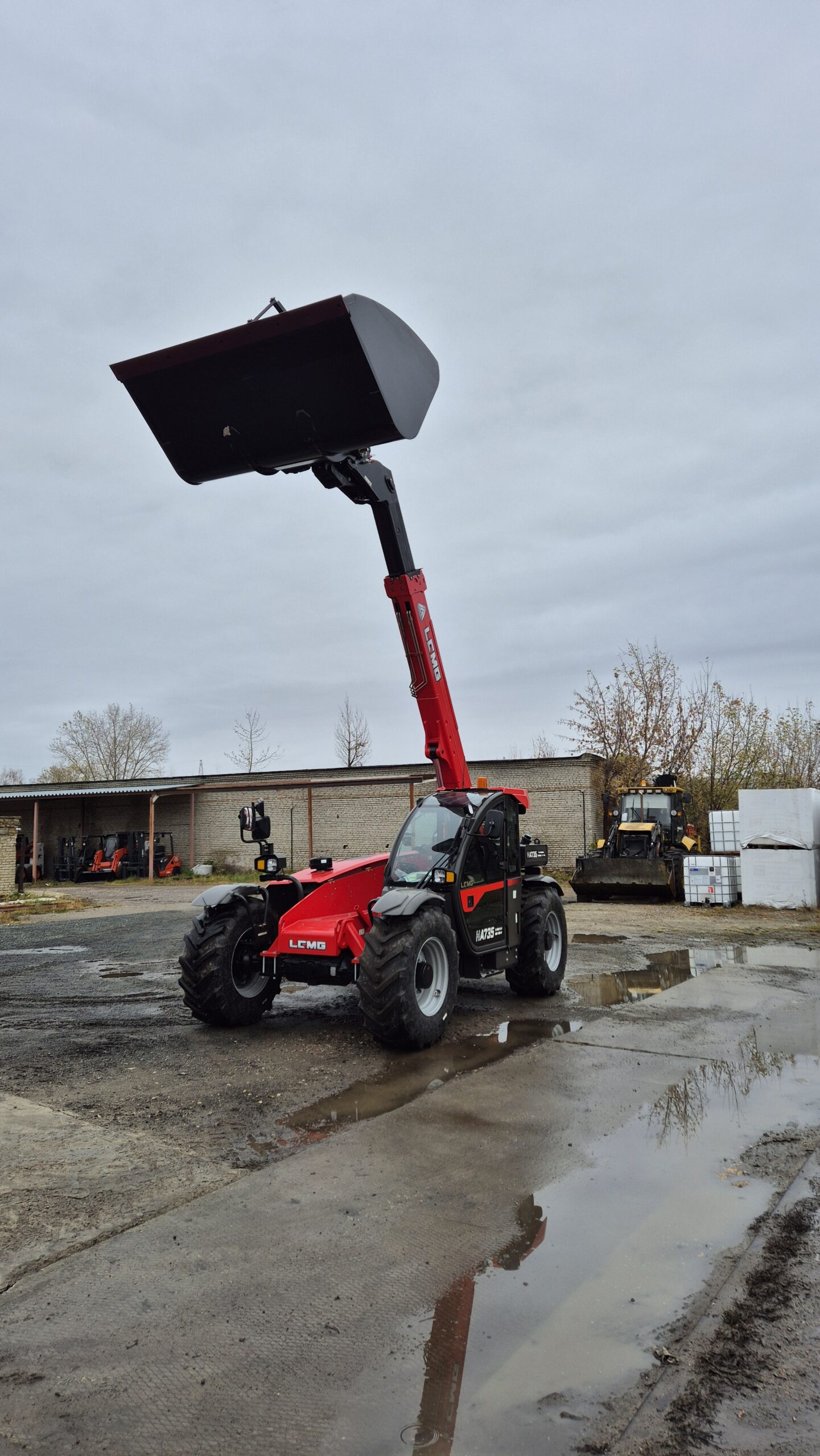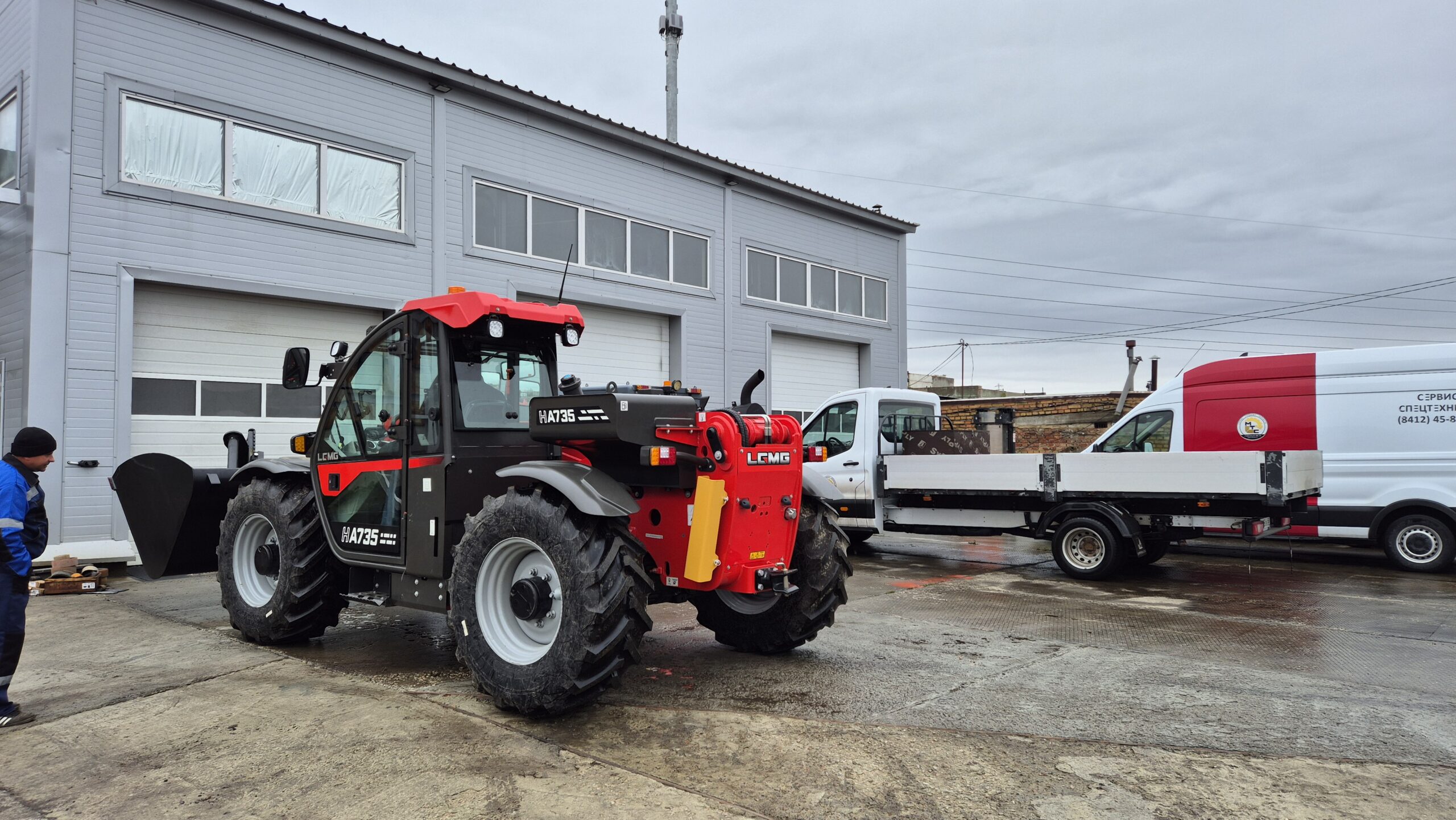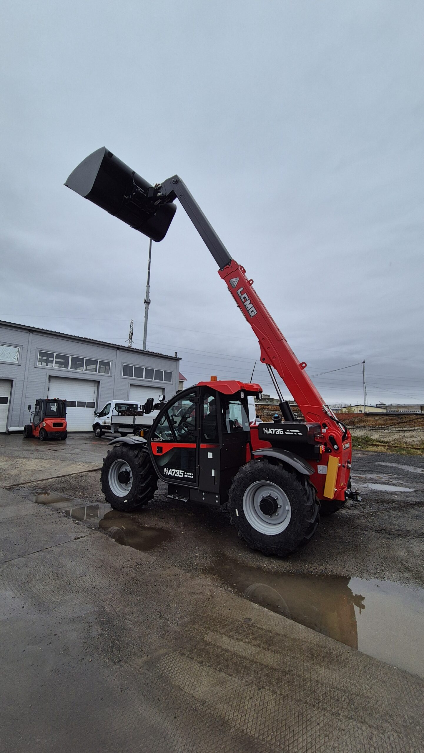 Полноприводный телескопический погрузчик LGMG НA 735 собирается на китайском заводе Lingong Heavy Machinery Co., Ltd. Одно из преимуществ данной модели — аксиально-поршневой насос рабочей гидравлики объёмом 45 куб. см (99л/мин), благодаря которому погрузчик может одновременно выполнять три движения: поднимать груз, выдвигать стрелу и работать кареткой, что сокращает время на погрузку и увеличивает производительность машины.