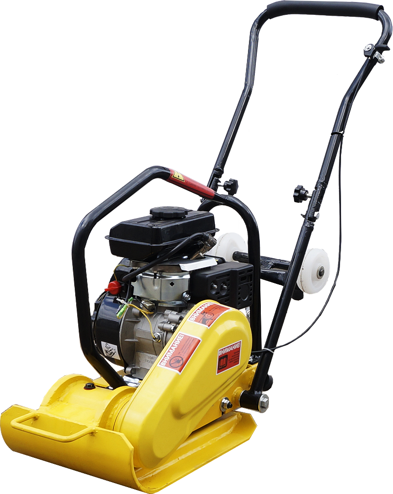 Компактная виброплита, предназначена для небольших площадей и работы в ограниченных пространствах. Для удобства транспортировки снабжена колесами.