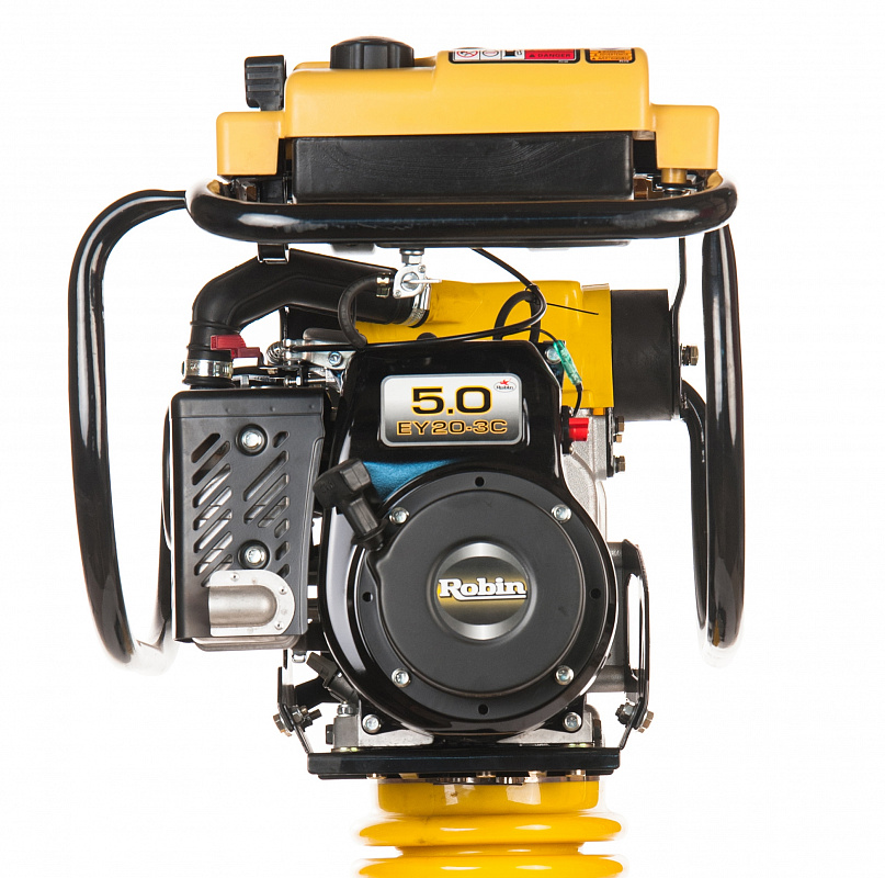 Вибротрабовка оснащена бензиновым двигателем. Сила удара достигает 1300 кг. Удобная ручка с вынесенными на неё органами управления облегчает работу оператора.