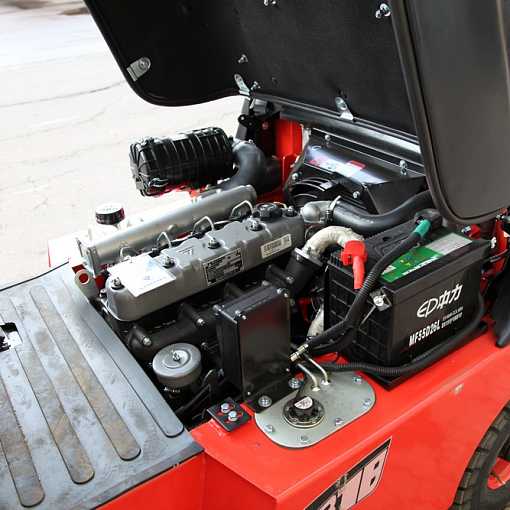 Техника укомплектована бензиновым двигателем Nissan K25 мощностью 50 л. с. Силовой агрегат экономно потребляет топливо при интенсивной эксплуатации техники в режимах повышенных нагрузок, при этом гарантирует стабильную производительность и работоспособность. Процесс техобслуживания не представляет особой сложности, не требует тратить много времени и сил благодаря упрощенному доступу к узлам за счет большого угла открытия капота.
