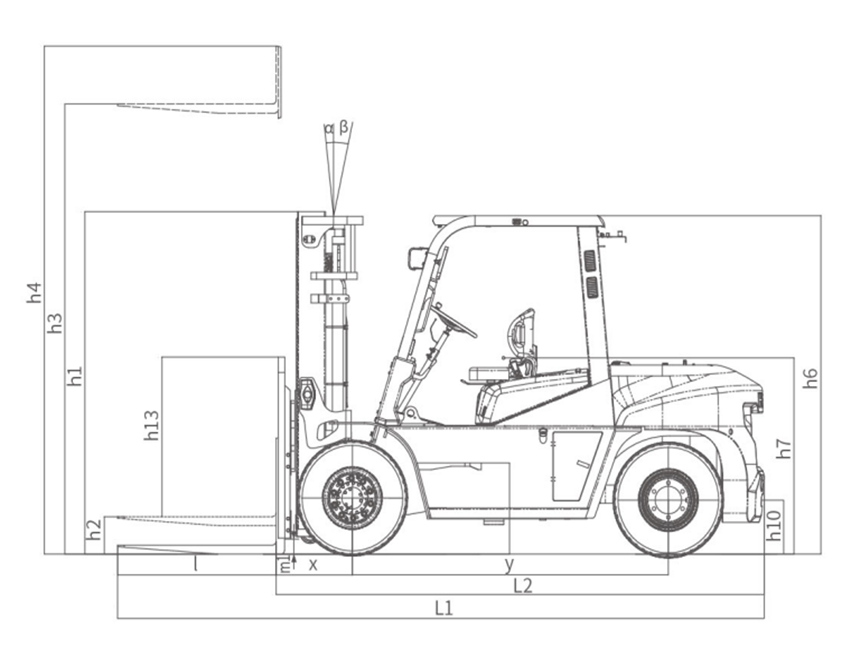 Вилочный дизельный погрузчик CHL (HELI) CPCD100-W2K2 максимальной грузоподъемностью 10 тонн и высотой подъема 3м