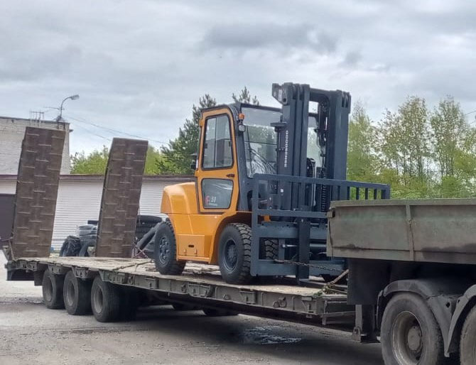 Вилочные погрузчики грузоподъемностью 5тн и более (стандартные, а не мини), перевозятся на трале, поскольку имеют массу, продавливающую полы обычной фуры и большие габариты.
